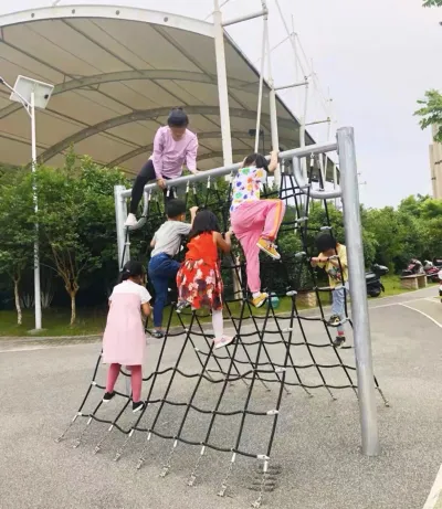 This A-frame rope climbing structure provides a challenging physical activity for children to develop motor skills and coordination. Constructed with heavy-duty galvanized steel and reinforced nylon ropes, it ensures long-lasting durability and safety in high-traffic outdoor environments.