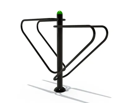 This professional-grade outdoor dip station is engineered for high-traffic public environments, utilizing heavy-duty galvanized steel to ensure structural integrity and resistance to heavy use. The surface is treated with a premium electrostatic powder coating that resists corrosion, scratches, and UV fading, making it ideal for year-round outdoor exposure. Fully compliant with CE and TUV safety standards, the equipment features smooth, rounded edges and ergonomic bar spacing to prevent injury during intense bodyweight workouts. For maintenance, we recommend a monthly inspection of the base bolts and a simple wipe-down with a damp cloth to remove dust; the high-quality powder coating typically requires a professional refresh every 5 to 7 years depending on local climate conditions. This versatile fitness unit is a perfect addition to a community park in Berlin, providing residents with a free, accessible way to improve upper body strength. Its minimalist black design with a vibrant green accent cap blends seamlessly into modern urban landscapes while offering a safe and effective workout platform for fitness enthusiasts.