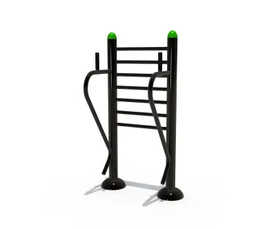 This Outdoor Fitness Dip Station and Vertical Ladder is engineered for high-traffic public environments, offering a robust platform for calisthenics and strength training. Constructed from premium galvanized steel with a high-quality powder-coated finish, the unit is designed to withstand harsh weather conditions while maintaining its structural integrity. The equipment features ergonomic grips and a stable base, ensuring user safety during intense workouts. It fully complies with CE and TUV safety standards, making it a reliable choice for municipal projects. For maintenance, we recommend a monthly inspection of the base bolts and a quarterly wipe-down with a damp cloth to remove dust and debris; the powder coating should be checked annually for any chips to prevent oxidation. This versatile unit is an ideal addition to a Berlin public park or a community fitness trail in Munich, encouraging active lifestyles among adults and teenagers. Its sleek black design with vibrant green accents fits seamlessly into modern urban landscapes.
