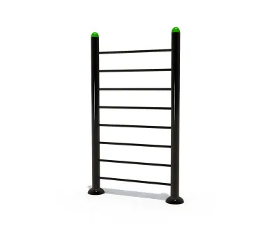 This professional-grade outdoor wall ladder is an essential component for any modern calisthenics park or school playground. Manufactured using heavy-duty galvanized steel pipes, the structure features a premium powder-coated finish that resists corrosion and fading under intense sunlight. The design adheres strictly to EN1176 and TUV safety standards, providing a secure platform for vertical climbing, stretching, and core strengthening exercises. Maintenance is straightforward: we recommend a monthly inspection of the base bolts and a simple wipe-down with a damp cloth to remove dust. The powder coating should be checked annually for any chips to prevent oxidation, though the galvanized core offers excellent protection. This specific model is a popular choice for urban revitalization projects in Warsaw, where it serves as a durable fixture in community fitness hubs. Its minimalist black aesthetic with vibrant green accents allows it to blend seamlessly into both natural park settings and contemporary urban landscapes, providing a versatile workout station for users of various fitness levels.