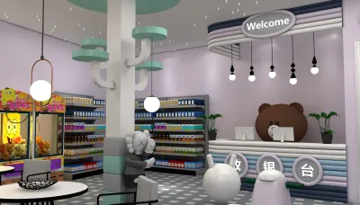 The vibrant pop-culture aesthetic and integrated character sculptures shown in this design make it an ideal focal point for flagship retail stores or family entertainment centers seeking high-impact, brand-aligned visual engagement.