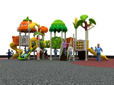 This harvest-themed outdoor playground features a vibrant mix of slides, climbing tunnels, and interactive panels designed to stimulate physical and cognitive development. Built with weather-resistant LLDPE and galvanized steel, it ensures a safe and durable environment for high-traffic community parks.