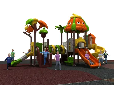 This vibrant nature-themed outdoor playground features multiple slides, a crawl tunnel, and interactive climbing elements designed for physical development. Built with weather-resistant LLDPE and galvanized steel, it ensures a safe and durable environment for community parks and schools.
