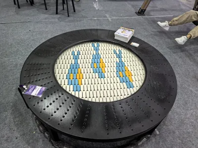 The rugged, textured outer ring and modular tile system shown in this design are engineered to withstand the intensive wear of metropolitan environments while maintaining a clean, modern aesthetic.