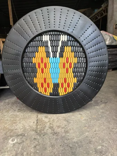 Constructed with weather-resistant polymers and a durable black finish, this panel serves as a low-maintenance decorative element that withstands high-traffic public environments while adding a pop of color.