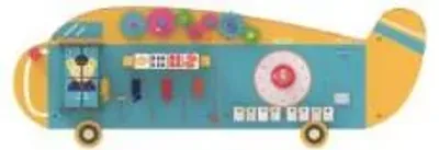 This airplane-themed wall activity board features interactive gears, a clock, and sliding elements to stimulate fine motor skills. Designed for high-traffic commercial environments, it uses durable, non-toxic materials to ensure a safe and engaging sensory experience for toddlers.