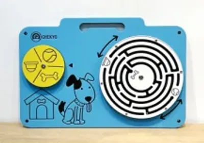 This wall-mounted activity board features a rotating maze and a spinning icon wheel designed to enhance fine motor skills and cognitive development. Crafted from durable, non-toxic materials, it provides a safe and engaging sensory experience for toddlers in commercial play areas.