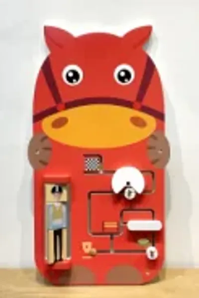 This horse-themed wall panel is an interactive sensory toy designed to engage young children through tactile exploration and fine motor skill development. Crafted from high-quality, non-toxic materials, it provides a safe and space-saving entertainment solution for busy commercial environments.
