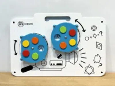 This interactive camera-themed wall panel features rotating color wheels designed to enhance fine motor skills and color recognition in young children. It is a space-saving solution for indoor play areas, crafted from durable, non-toxic materials to ensure a safe and engaging sensory experience.