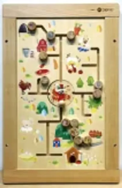 This wall-mounted wooden maze features a charming farm theme designed to enhance fine motor skills and cognitive development in young children. It is an ideal space-saving solution for waiting rooms and early learning centers, crafted from high-quality, eco-friendly wood with a smooth, safe finish.