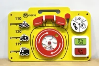 This wall-mounted sensory board features a classic rotary dial and sliding emergency vehicles to enhance fine motor skills and cognitive recognition. Crafted from durable, non-toxic materials, it provides a safe and engaging tactile experience for early childhood development centers.