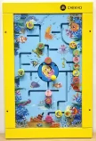 Enhances hand-eye coordination through the deliberate guidance of sea-themed pucks across the multi-directional maze grid.