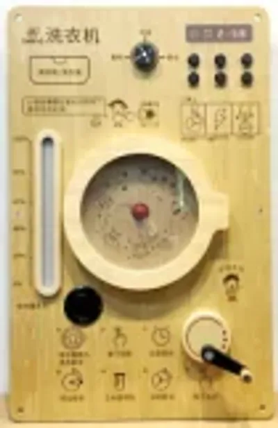 This interactive wooden wall panel simulates a washing machine to foster imaginative role-play and fine motor skill development in early childhood. Crafted from high-quality sustainable wood with tactile components, it provides a safe and engaging sensory experience for commercial play areas.