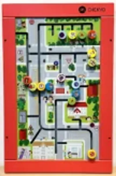 Refines fine motor dexterity and hand-eye coordination through the precise dragging of magnetic discs along the complex urban road network.