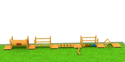 This modular wooden obstacle course is designed to enhance children's motor skills and balance through a variety of physical challenges. Crafted from high-quality, weather-resistant timber, it provides a safe and engaging environment for active outdoor play in schools and parks.