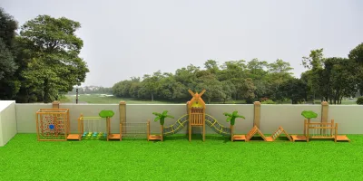 This multi-functional wooden obstacle course is engineered to challenge children's motor skills and coordination through a series of engaging physical activities. Constructed from high-quality, pressure-treated timber and reinforced with UV-stabilized ropes and galvanized steel connectors, the structure is built to withstand diverse weather conditions. The design incorporates a variety of elements including a spider-web climbing net, suspended balance buckets, a crawl-through rope tunnel, and a central lookout tower. Safety is paramount, with all components meeting rigorous CE and TUV standards to prevent entrapment and ensure structural integrity. For maintenance, we recommend a bi-annual inspection of all rope tension and a yearly application of wood sealant to maintain the timber's luster and resistance to rot. This versatile playground set is an ideal addition to a Singapore preschool garden or a community park in Melbourne, providing a natural aesthetic that blends seamlessly with green landscapes while offering endless hours of safe, adventurous play.